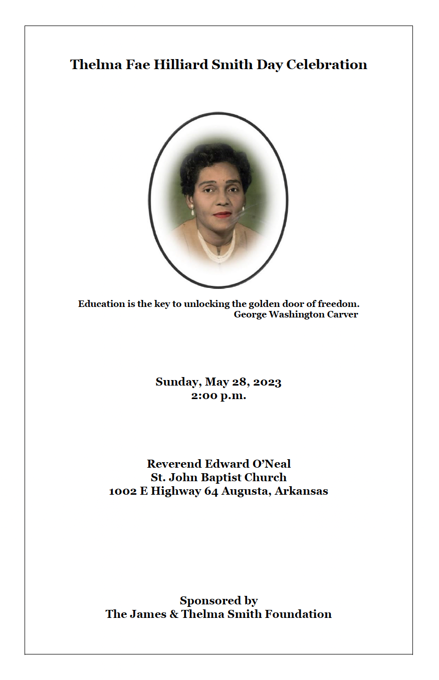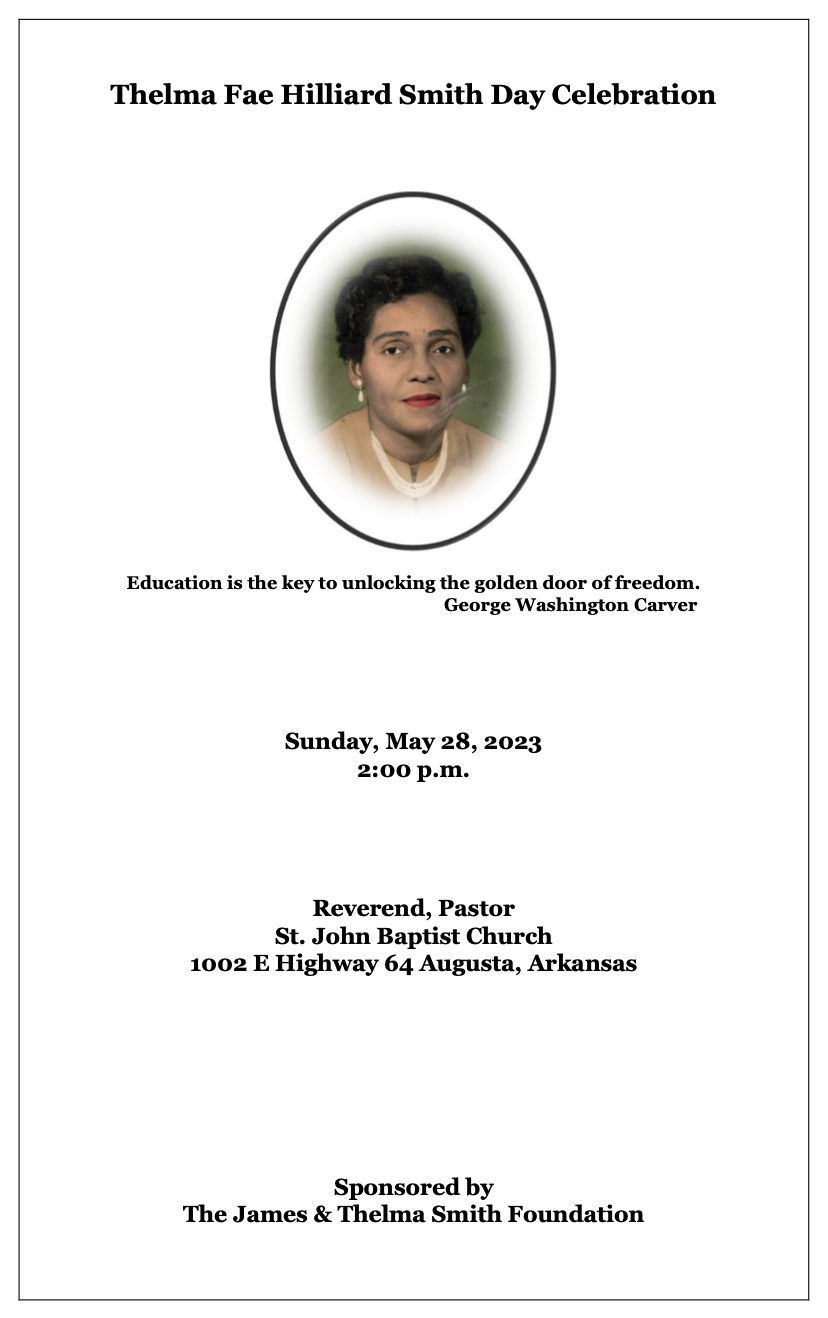 The James and Thelma Smith Sr. Foundation is a testament to the power of generosity, compassion, and community. The Foundation memorializes James and Thelma Smith, who dedicated their lives through their academic profession to uplift the community that started in the town of Augusta, Arkansas, and later expanded throughout the country. The foundation represents a beacon of hope and support for those in need. The foundation aims to touch countless lives and profoundly impact the world, from scholarships for promising students to grants for causes close to the couple’s hearts. The Foundation’s legacy of kindness and dedication to making a difference will continue inspiring and uplifting us all for generations.